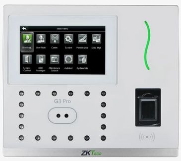 La terminal G3 Pro de ZKTeco es la solución líder en control de asistencia y acceso biométrico 3 en 1 con tecnología sin contacto. Combina reconocimiento de palma (vena, forma e impresión), huella digital BioID y reconocimiento facial ZKFace v12.0 para una autenticación ultrarrápida (<0.35 seg) y antifraude. Ideal para empresas que priorizan higiene, escalabilidad y cumplimiento normativo.